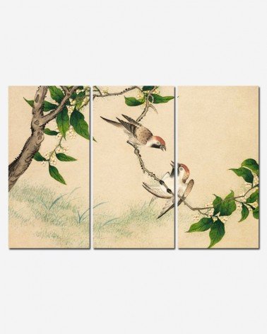 Trio Pássaros e flor - arte chinesa - Zhang Ruoai